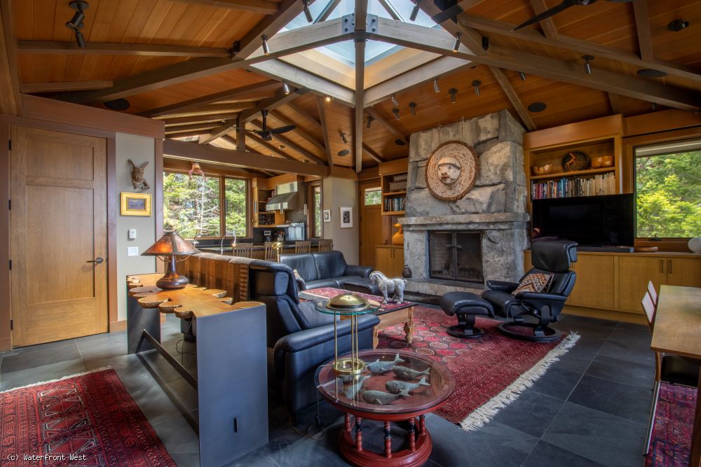 The heated floors are large format slate tile. The patios are also slate, with additional slate and hand textured granite on-site for expansion, if desired. The metal roof is exceptionally crafted and was installed by Flynn Canada. There is expansive natural light with large windows and skylights. The windows are Loewen aluminum clad on the outside with fir interiors. Amenities include heated towel bars, heated shower walls, a heated bidet, hard wired security and fire alarm system, built-in audio and an in-house vacuum system. The residence is wired for an ultra-flexible lighting and audio control system. There is plenty of power to the property with a 400 amp underground electrical service. Excellent high-speed internet is available.