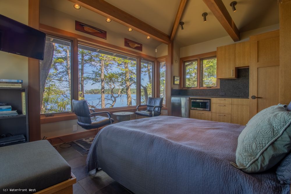 There is a main residence, and a separate guest residence. The main residence is 1537 square feet, with one bedroom and one bath. There is a separate 418 square foot building that has a 265 square foot guest room and bath as well as a 153 square foot equipment and storage room. The existing residence was originally designed as a guest cottage and a 2-car garage with a main residence planned to be constructed later. This building could be converted to the original concept and a main house built out near the point.